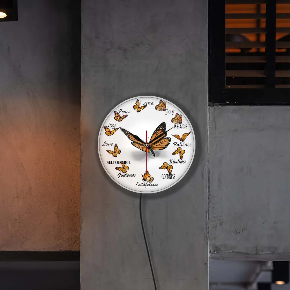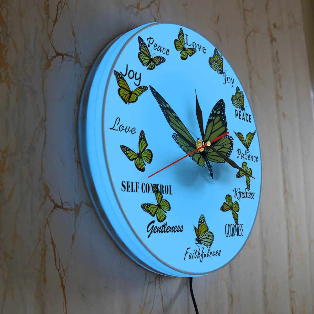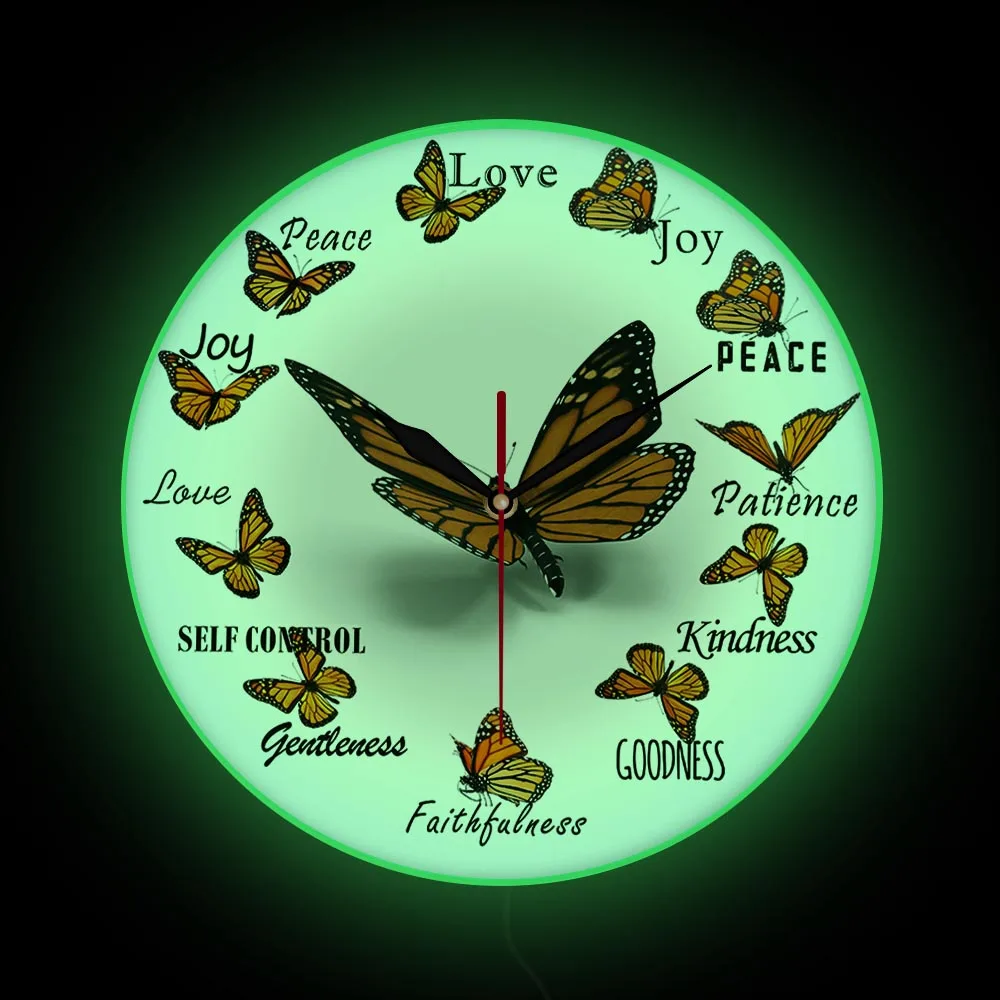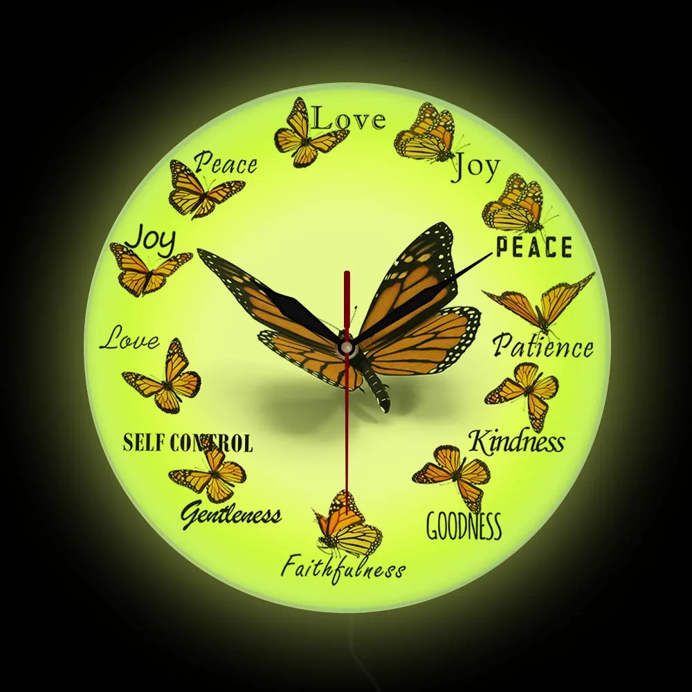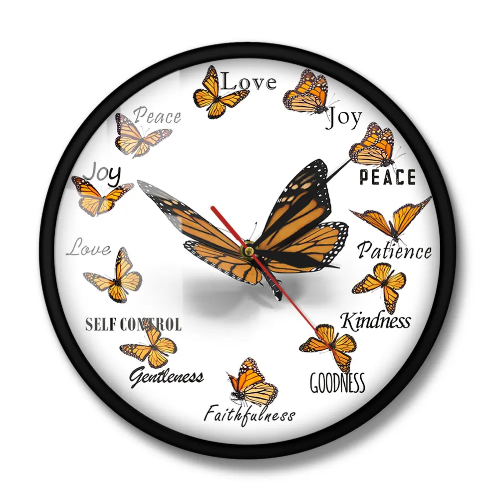 Fruit of the Spirit Christian Virtues Flying Butterfly Round Clock Monarch Butterfly Home Decor Wall Clock Butterfly Lover Gift
