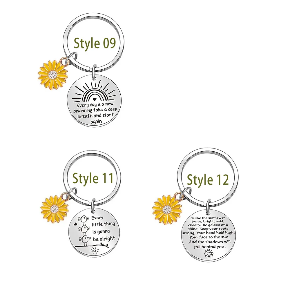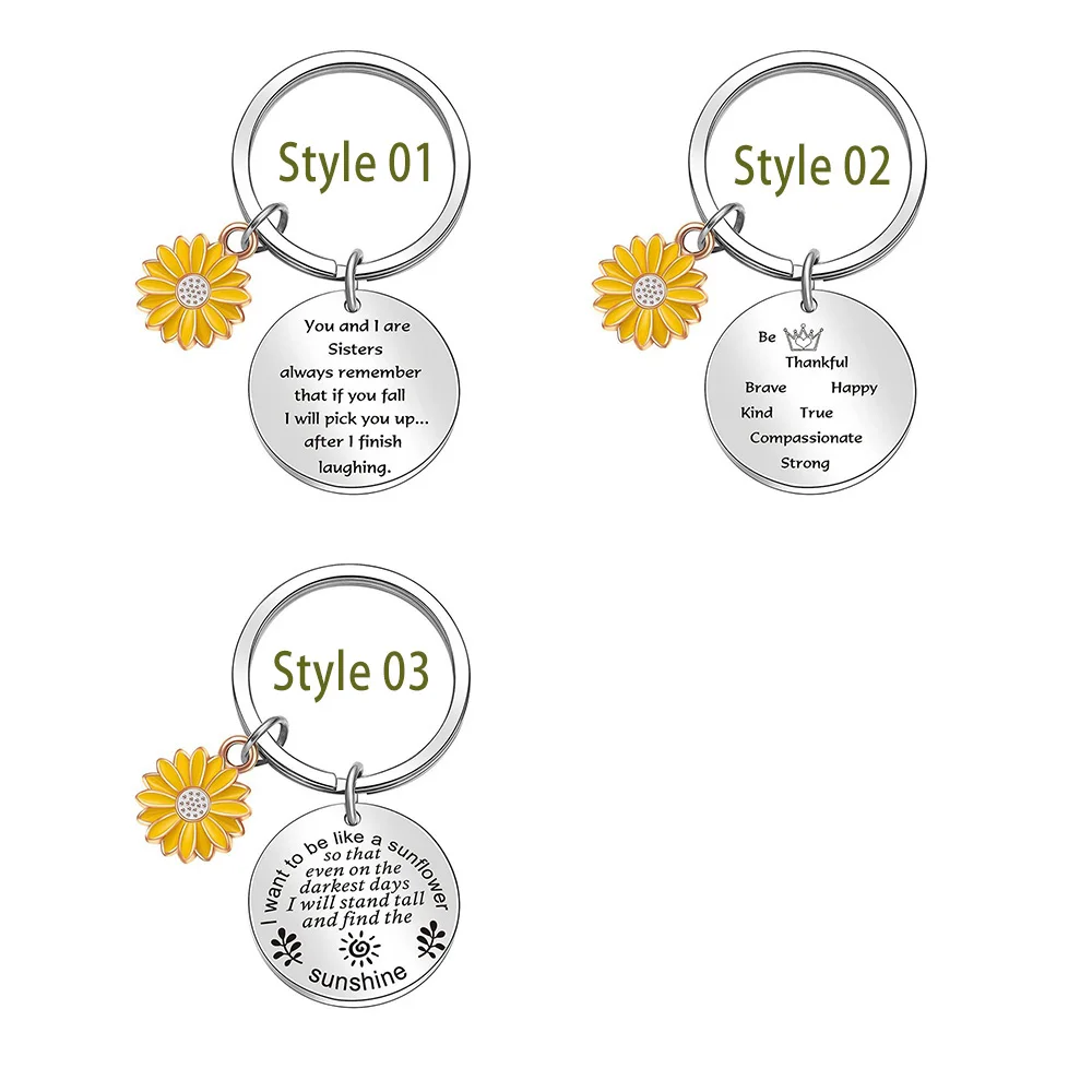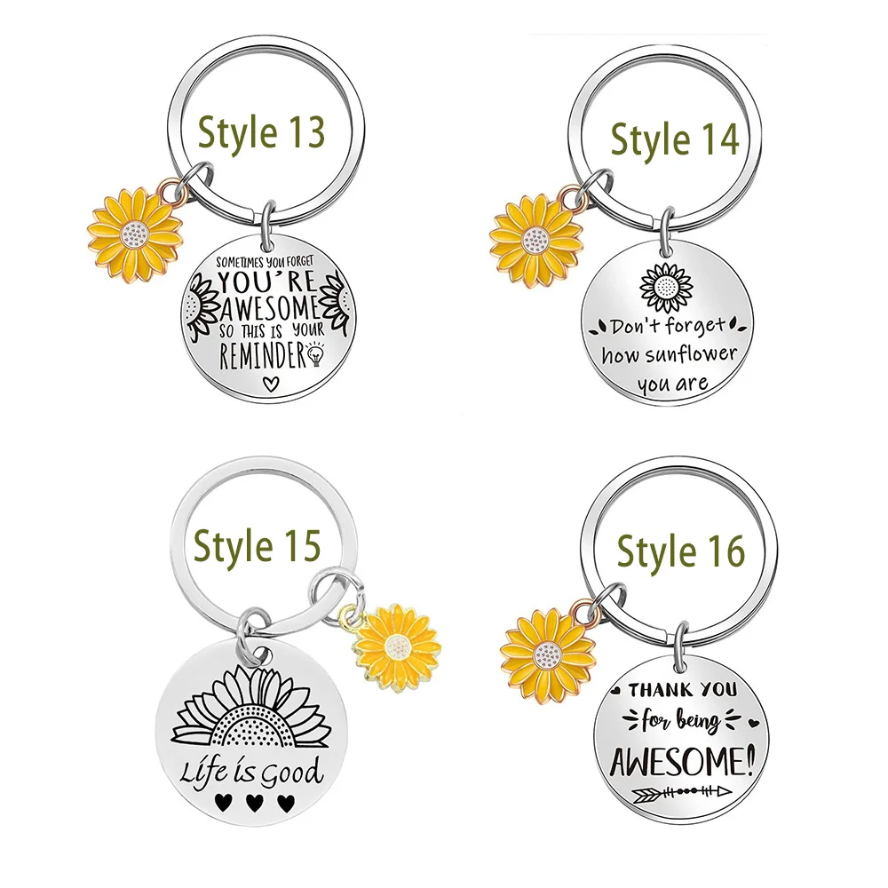 Sunshine Daisy Sunflower Pendant Titanium Plate Keychain For Parent Teacher Friend Gifts DIY Thank you Laser Words Engraving